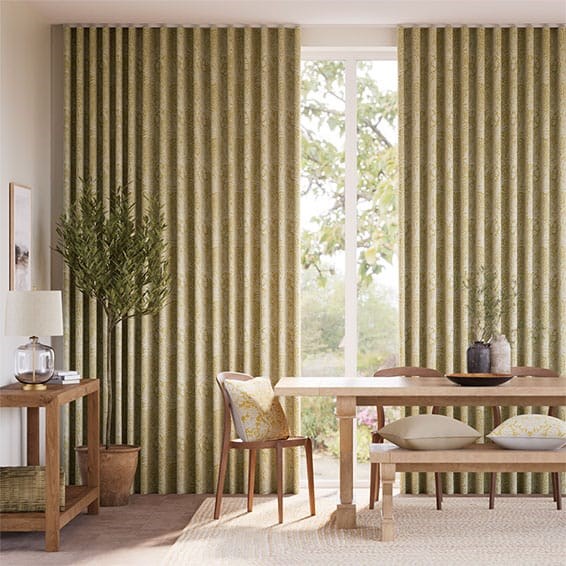 Questa bellissima fantasia usata nella nostra tenda classica su misura Mimosa porta il sole in casa vostra tutto l'anno, fa parte di uno dei design di William Morris ed è all'interno della nostra collezione in collaborazione con il Victoria and Albert Museum di Londra. Disegnato nel 1875, e originariamente chiamato Marigold, la fantasia è un insieme di foglie varie dimensioni che danno un senso di movimento il tutto bilanciato da una palette dai colori tenui.