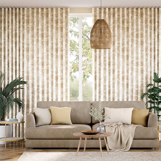 Con una palette di colori dorati, ocra e bianco, pensiamo che queste tende siano perfette in camere da letto e ampi salotti dai toni autunnali e legni scuri.