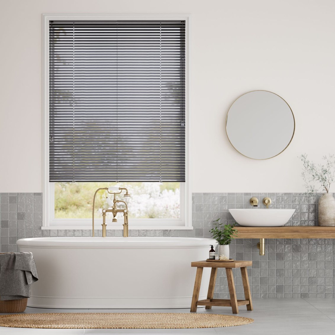 Una veneziana color grigio grafite, elegante e incredibilmente pratica. Questa veneziana grigio scuro è dotata di sottili lamelle in alluminio, arricchite da una splendida texture che ne eleva lo stile.
